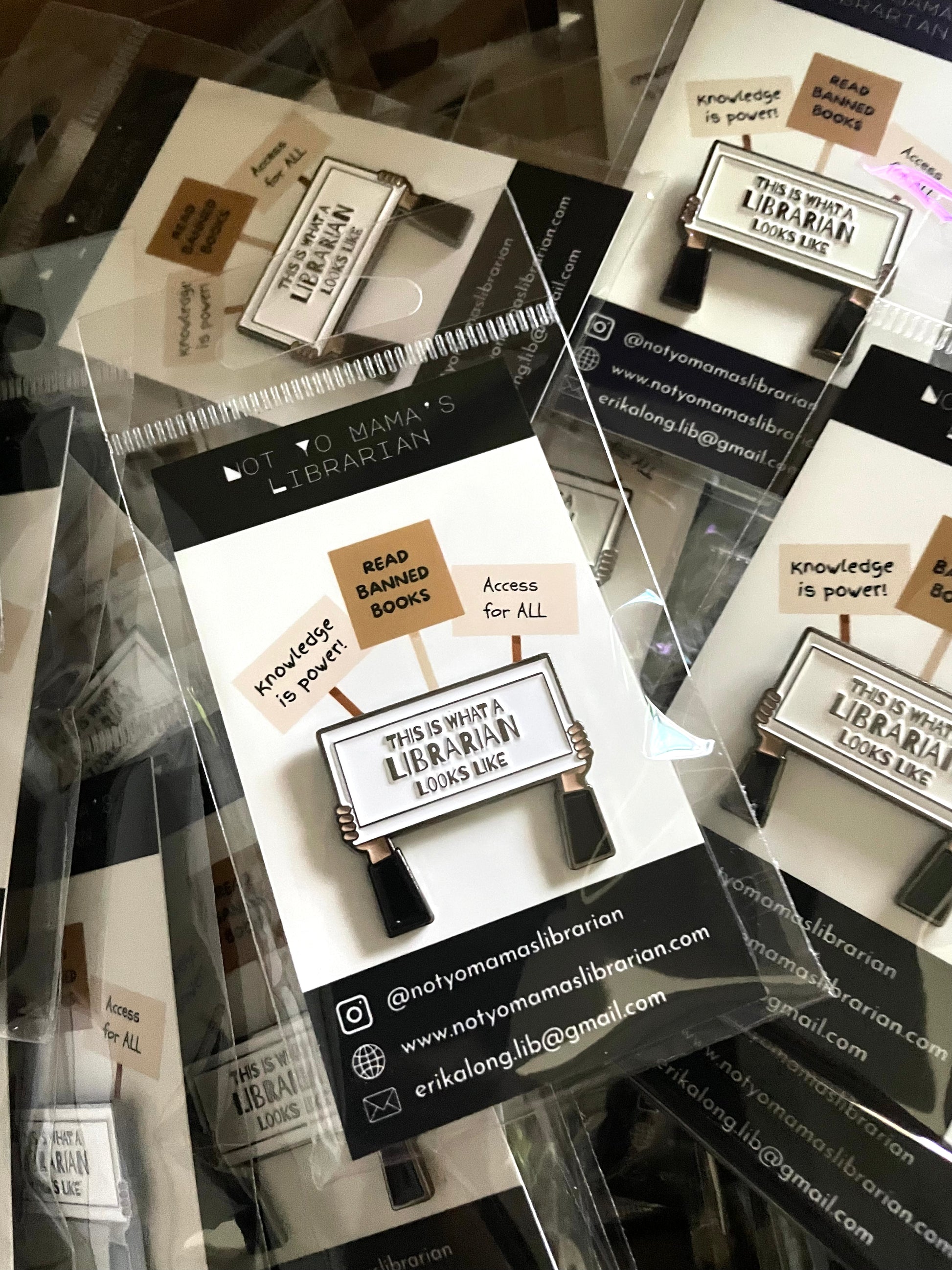A reminder that librarians don’t fit in a box . . . and neither does this pin. Perfect for anyone not yo mama’s librarian.